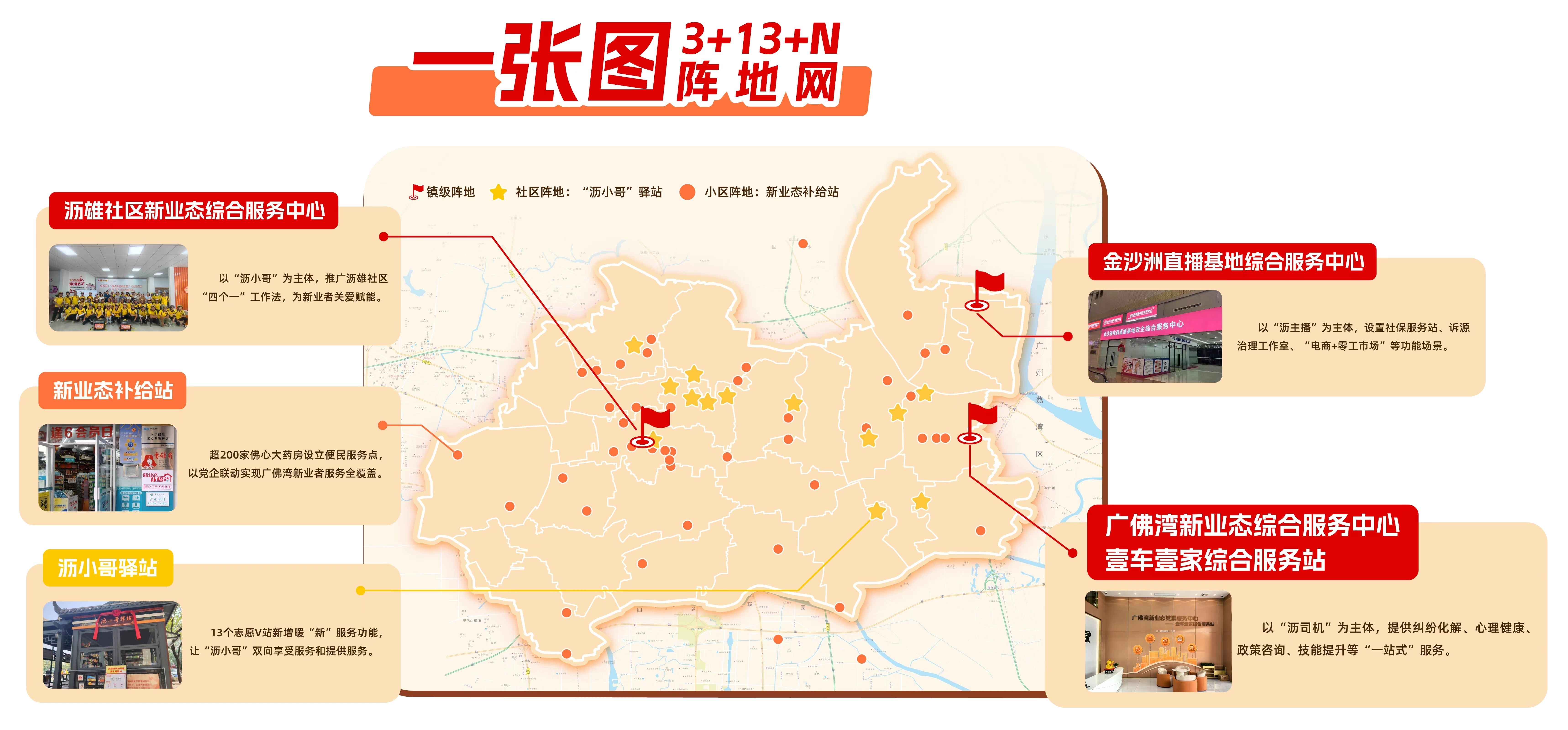 自今年1月发布“同新同沥”党建服务品牌以来,大沥镇突出“三个坚持”加快打造新就业群体“友好城镇”,成效显著。坚持组织覆盖从有形到有效,比如在外卖、快递、直播3大新业态聚集区建设超2000㎡的综合服务中心,于商圈、社区布局13个“沥小哥驿站”,形成“3+13+N”全域服务阵地一张网,日均服务新就业群体超3000人次。坚持资源从零散到聚合,整合司法调解、政务代办等10类服务清单,投放工伤保险、法律援助等80项资源,设立“一站式”权益保障窗口,累计解决劳动纠纷、积分入户等问题156件。坚持治理从单边到双向,推广凤池社区“党建引领全民志愿”经验,开展“流动宣传餐箱”“主播体验官”等特色服务,联动新业者服务居民超2000人次,实现“服务对象”向“治理力量”的转变。